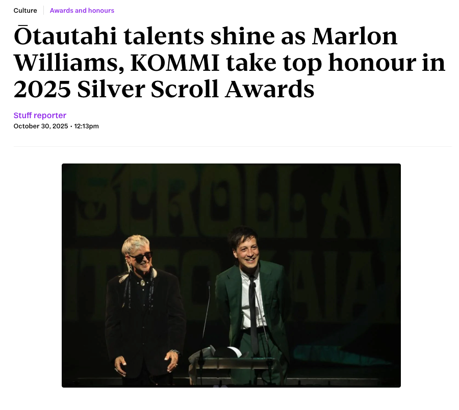 RNZ - ‘Silver Scroll Awards top 20 revealed’ - 10th July 2025